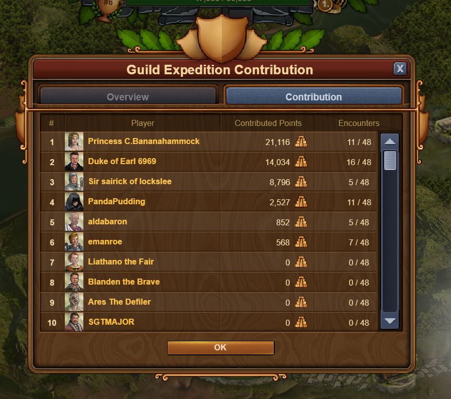 I think that I successfully joined the largest least-talkative group in the Forge of Empires universe. I hesitate to say that they are inactive because there are a few people who participate in guild expeditions. Emphasis on a few. From a simple glance, it seems as though we are a formidable, active guild: we have 47,893 guild expedition points, for goodness sakes! While that is technically correct, the sad reality is that those points were acquired by only 6 of our 76 guild members. Not even 10%. Just about half of those points were accrued by only one member! (Who has a wonderful reference to Friends as her name).